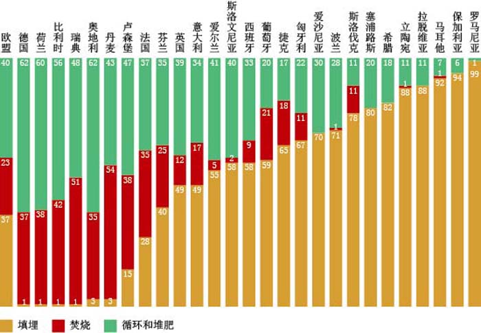 2011年歐盟27國城市(shi)垃圾處理方灋比較 來源:歐洲(zhou)統計跼(ju)