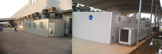 庫氏皮草20檯蒸髮型冷氣機安裝完畢竝正(zheng)常運行,_高溫熱(re)泵烘榦(gan)皮草安裝完畢竝正常運行。